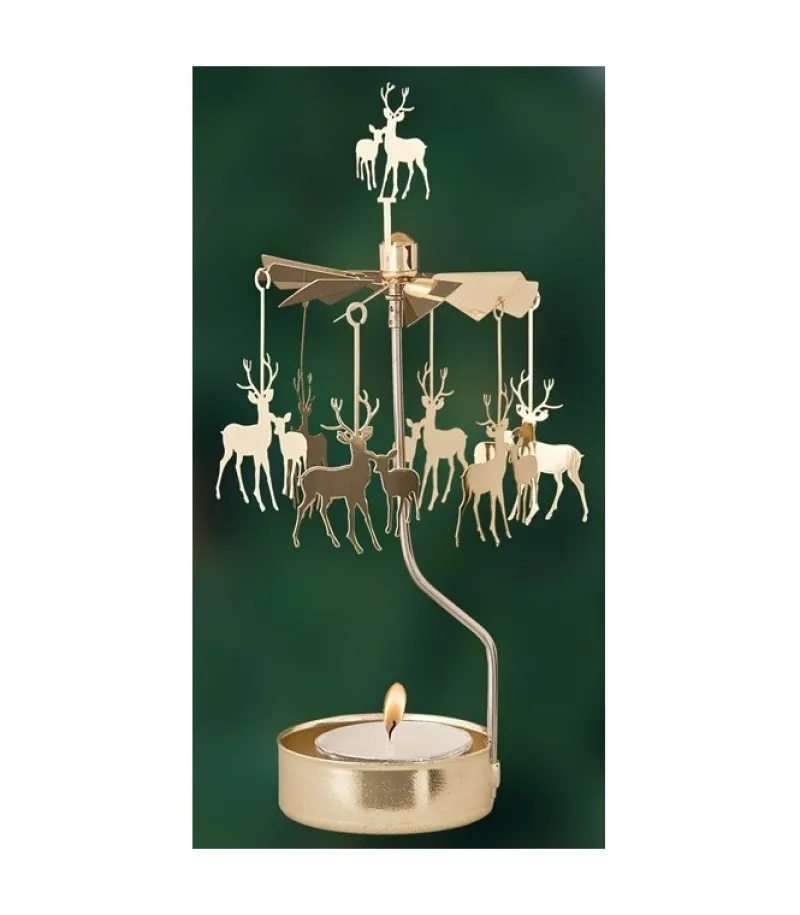 Bougeoir Carrousel Cerf En Metal Dore.Fonctionne Avec 1 Bougie De Type Chauffe-Plat (Fournie).Bougies De Rechanges Ci-De…