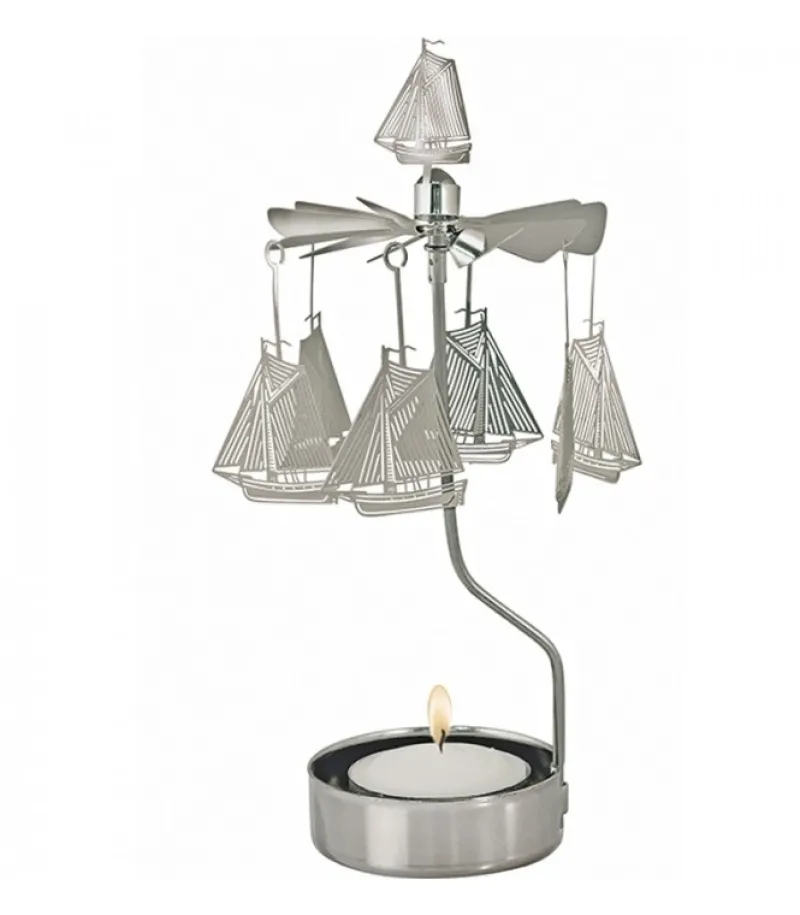Bougeoir Carrousel Voilier En Metal Chrome.Fonctionne Avec 1 Bougie De Type Chauffe-Plat (Fournie).Bougies De Rechanges …