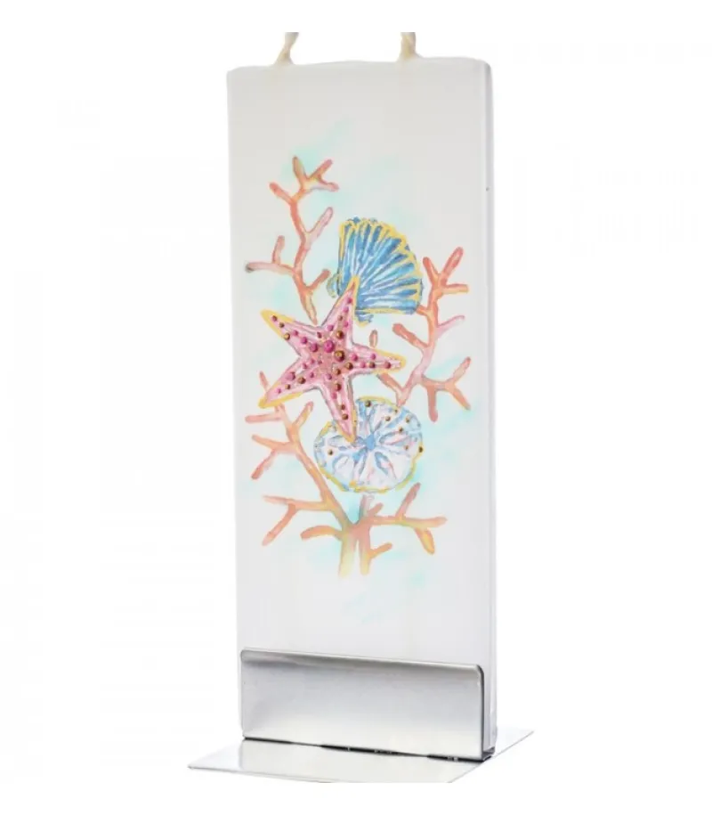 Bougie Déco Marine, Motif Etoile De Mer Et Coquillages.
