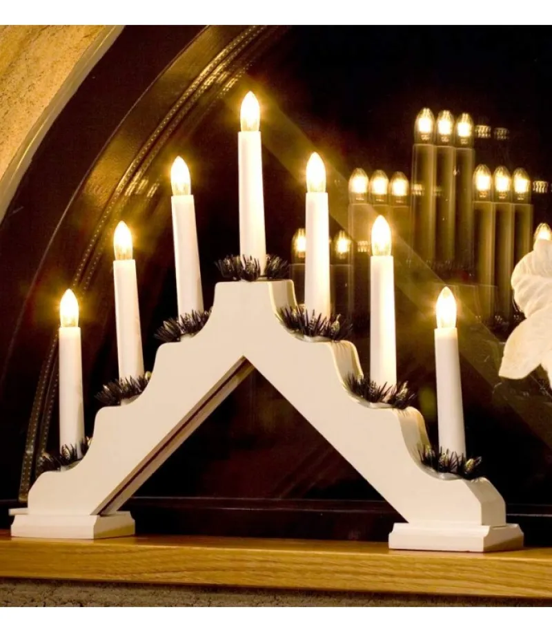 Décoration Lumineuse De Noël.Chandelier De Noël Pyramide En Bois A Bougie Electrique, Couleur Blanc.7 Ampoules Claire…