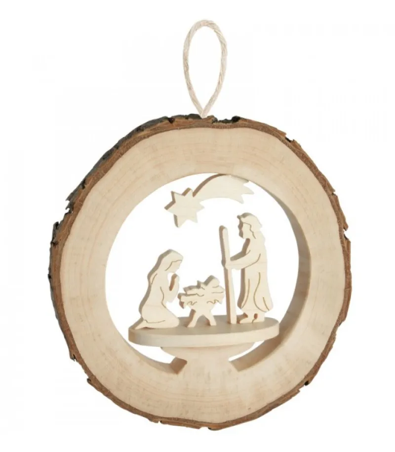 Crèche De Noël A Suspendre Dans Anneau De Bois<Waldfabrik, photophore en bois et étoile sapin de Noël Online