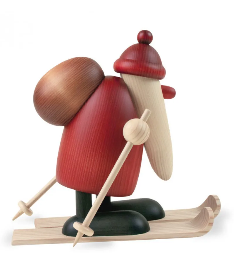 Grand Père Noël 19 Cm.Père Noël Rouge En Bois Peint A SkiFabrication Artisanale Allemande.