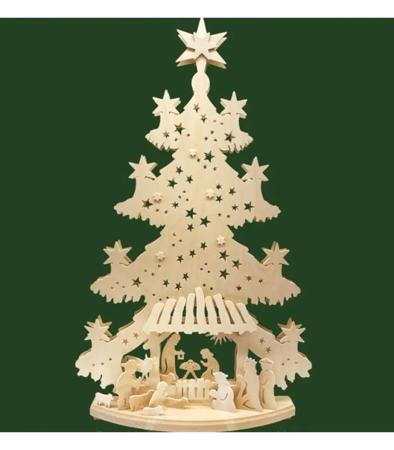 Crèche De Noël En Bois Avec Personnages Dans Un Grand Sapin De Noël Lumineux 220 V.Sapin Led Avec Illumination Par Re…