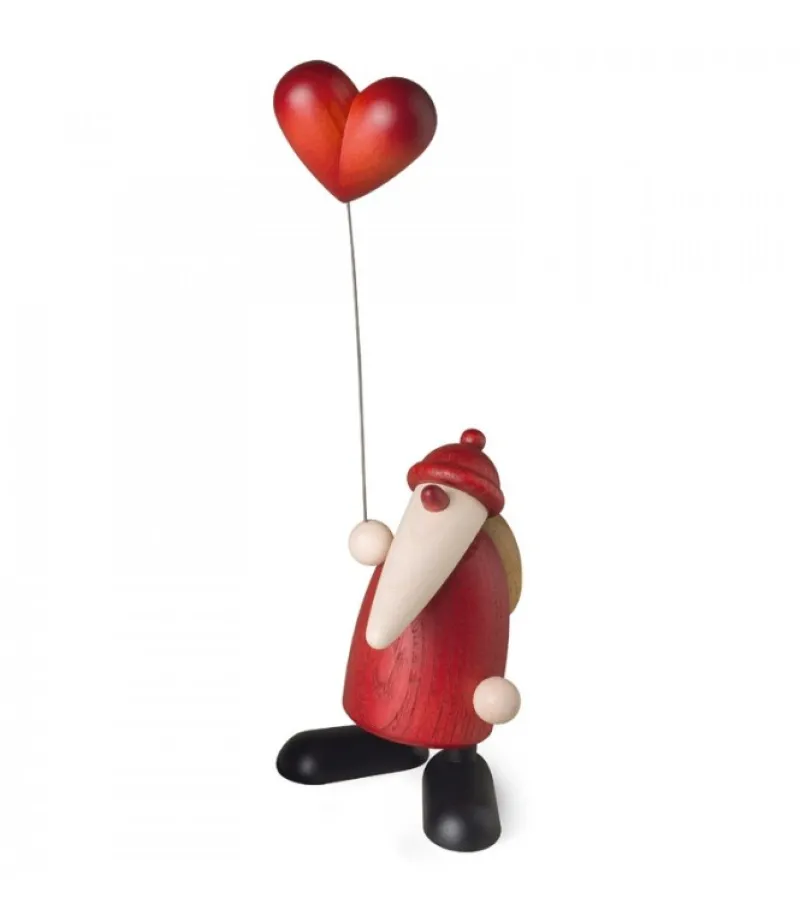 Figurine Père NoëlPère Noël Rouge Tenant Un Coeur.Fabrication Artisanale En Bois Allemande.