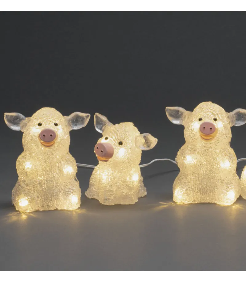 Décoration Lumineuse Extérieur.Lot De 5 Petits Cochons En Acrylique A Led, Transparent, 40 Diodes Blanc.Fonctionne Ave…
