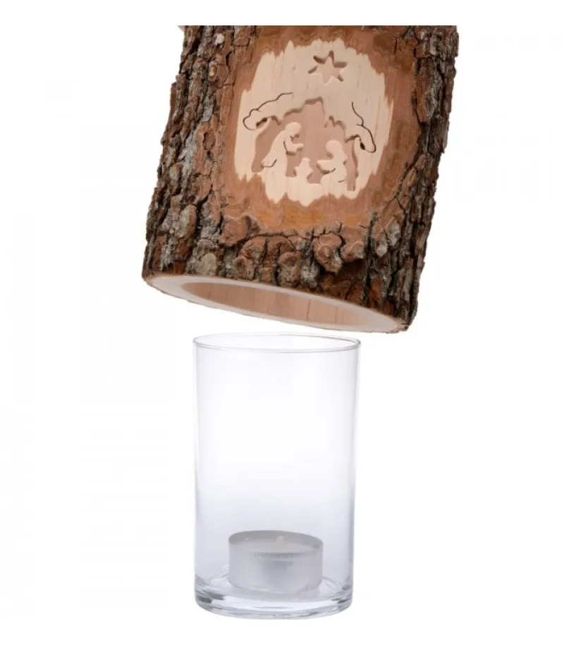 Photophore En Bois Avec Motif Crèche De Noël Et Etoile Realises En Bois Cisele.Fonctionne Avec Une Bougie Chauffe-Plat…