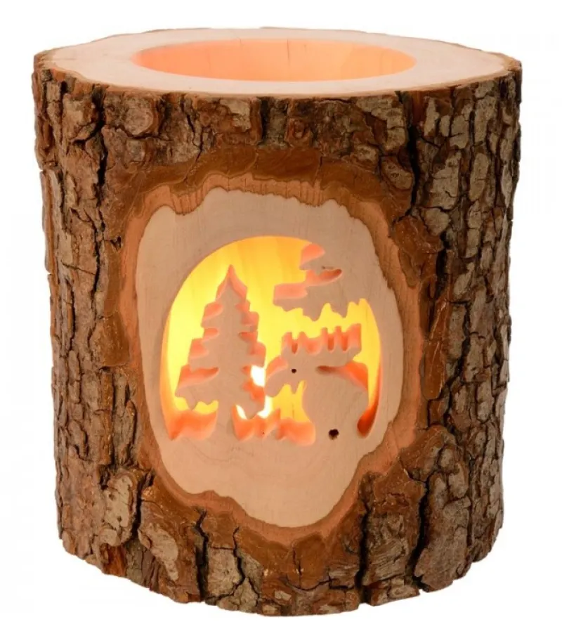 Photophore En Bois Avec Motif Elan Dans La Foret Realise En Bois Cisele.Fonctionne Avec Une Bougie Chauffe-Plat.