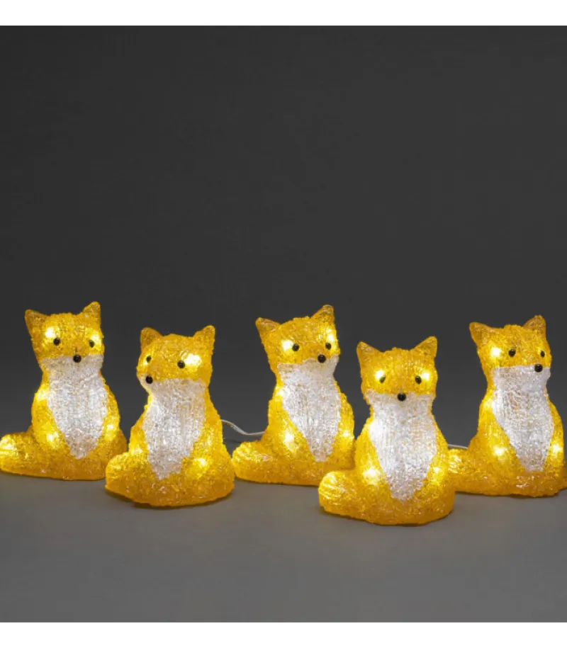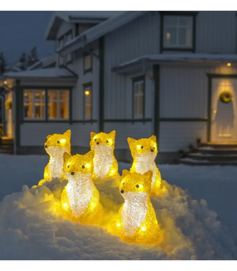 Renards Lumineux Acryliques Led Assis, Lot De 5, 40 Diodes Blanches Froides.