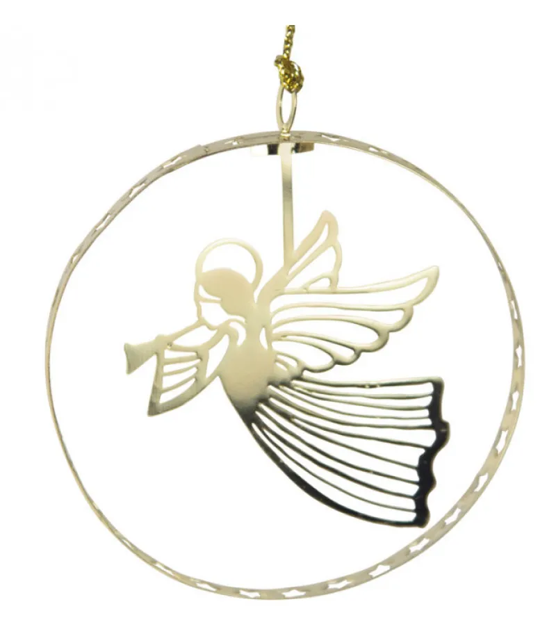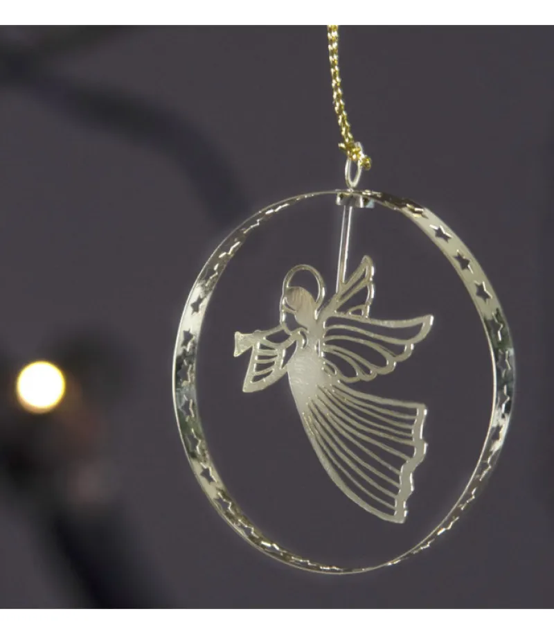 Ange De Noël Volant Dans Une Déco De Sapin En Metal Dore Ronde.