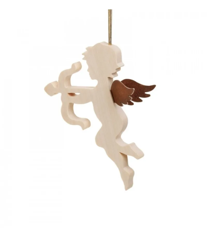 Petit Ange Décoratif A Suspendre, En Bois D’Erable, Avec Un Arc Et Une Fleche.