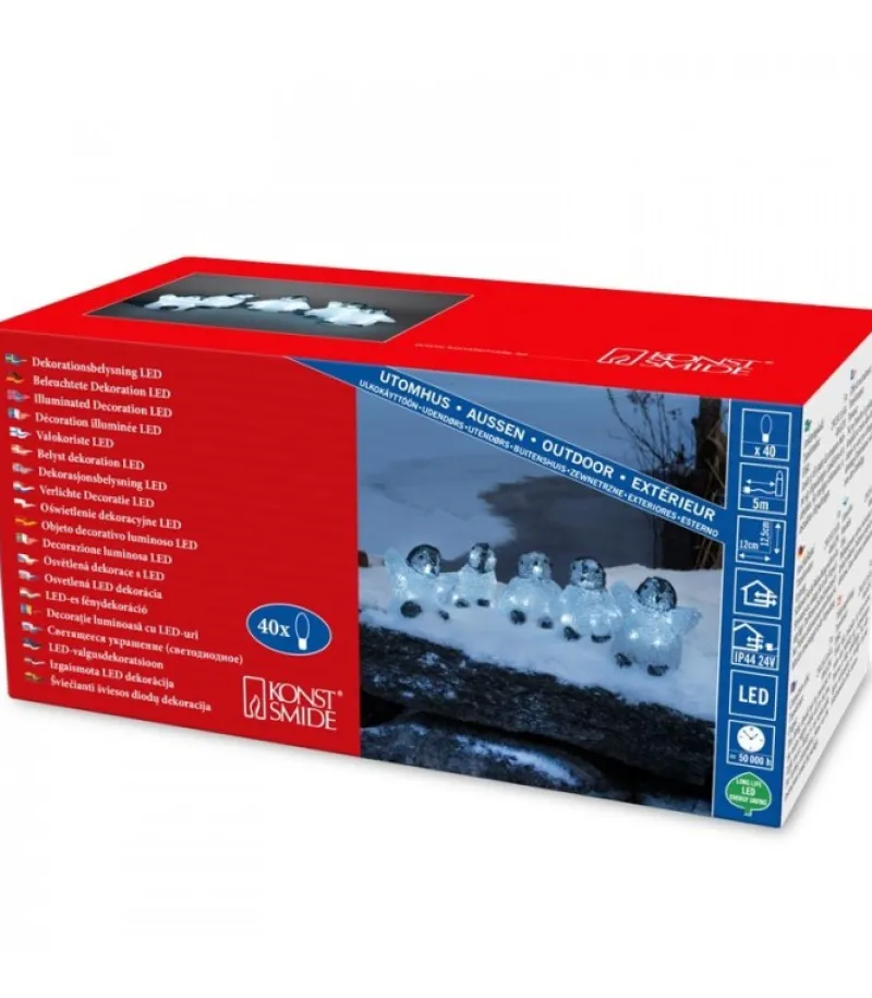 Bebe Pingouin A Led En Acrylique, Lot De 5, 40 Diodes Blanc Froid.