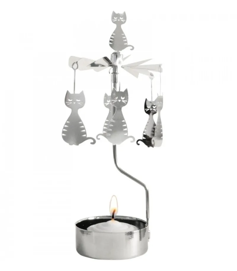 Bougeoir Carrousel Avec Six Chatons Assis En Metal Argente.Fonctionne Avec 1 Bougie De Type Chauffe-Plat (Fournie).Bougi…