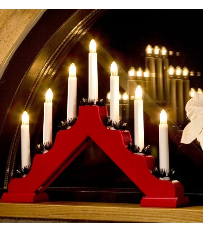 Décoration Lumineuse De Noël.Chandelier De Noël Pyramide En Bois A Bougie Electrique, Couleur Rouge.7 Ampoules Claire…