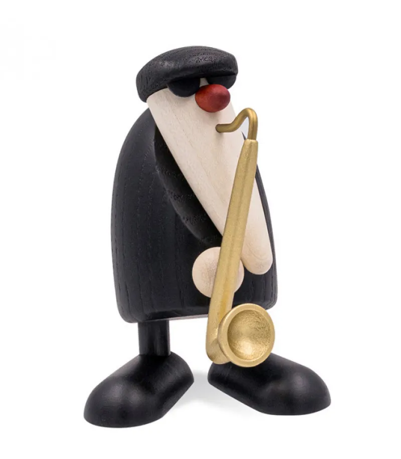 Figurine Musicien Jazz.Saxophoniste Avec Lunettes Noires Et Chapeau Avec Un Saxophone.Fabrication Artisanale Allemande E…