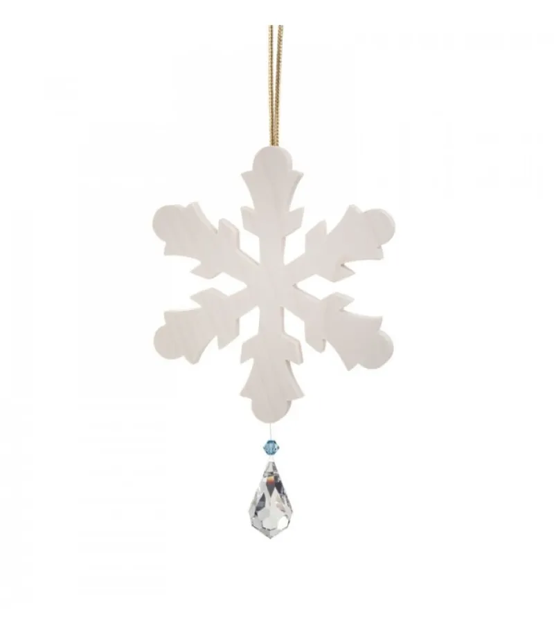 Décoration Pour Sapin, Flocon De Neige En Bois D’Erable Avec Cristal Swarovski.