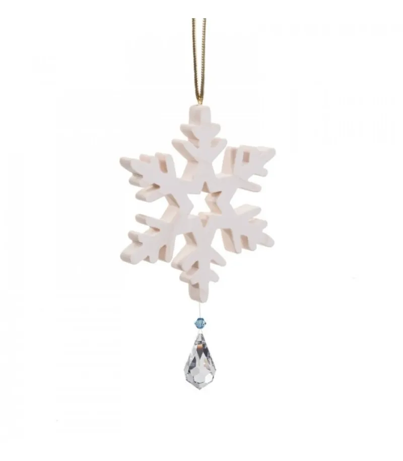 Décoration Pour Sapin, Flocon De Neige En Bois D’Erable Avec Cristal Swarovski.