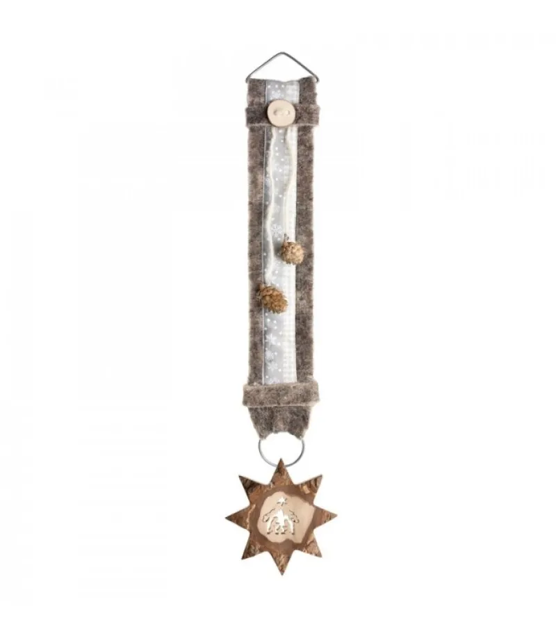 Grande Décoration Murale De Style Alpin Avec Ruban En Laine Et Etoile En Bois