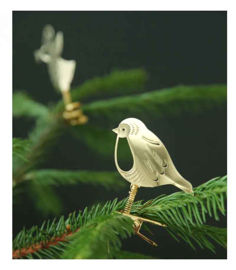 Décoration Noël Scandinave Pour Le Sapin.Oiseau En Metal Dore A Clipser Sur Une Branche De Sapin De Noël.Se Fixe A L’…