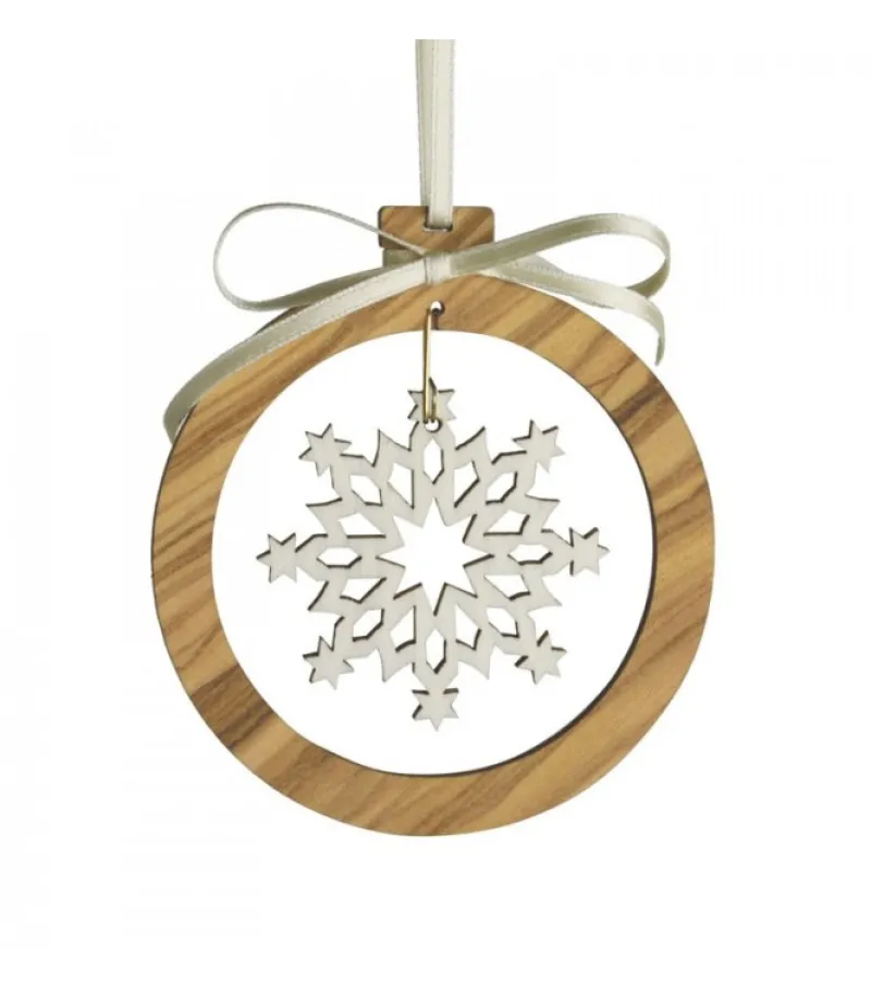 Pendentif A Suspendre En Bois D’Olivier Avec Noeud.Motif Cristal De Neige 2.Fourni Avec Un Cordon.Egalement Disponible E…