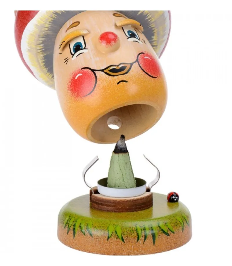 Personnage Brule-Encens Artisanal Allemand.Modele Champignon Joyeux En Bois Peint.A Utiliser Avec Les Cones D’Encens Ci-…