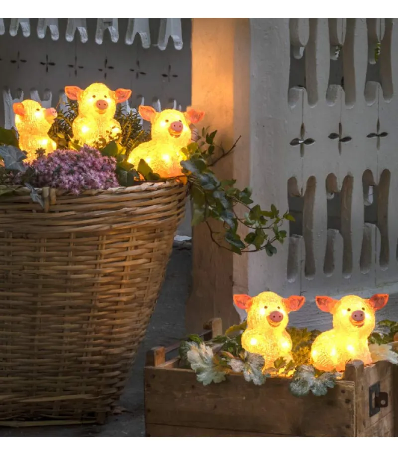 Décoration Lumineuse Extérieur.Lot De 5 Petits Cochons Roses En Acrylique A Led, Transparent, 40 Diodes Blanc.Fonction…