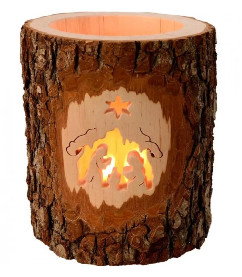 Photophore En Bois Avec Motif Crèche De Noël Et Etoile Realises En Bois Cisele.Fonctionne Avec Une Bougie Chauffe-Plat…