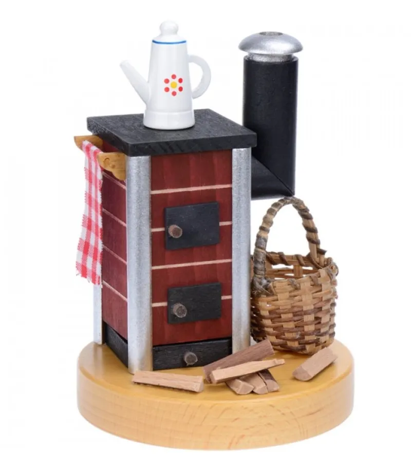 Diffuseur D’Encens En Bois Peint.Poele A Bois Avec Cafetiere Sur Le Dessus.A Utiliser Avec Cone De Senteur Ci-Dessous (V…