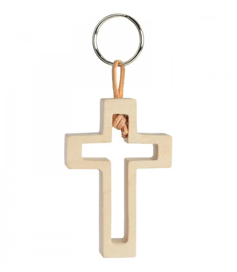 Porte-Clef Croix En Bois Avec Croix Découpee, 5,5 CmEn Bois D’Erable