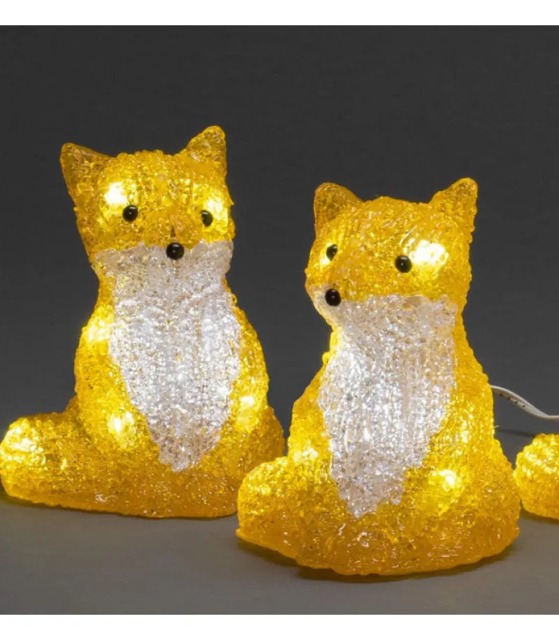 Renards Lumineux Acryliques Led Assis, Lot De 5, 40 Diodes Blanches Froides.